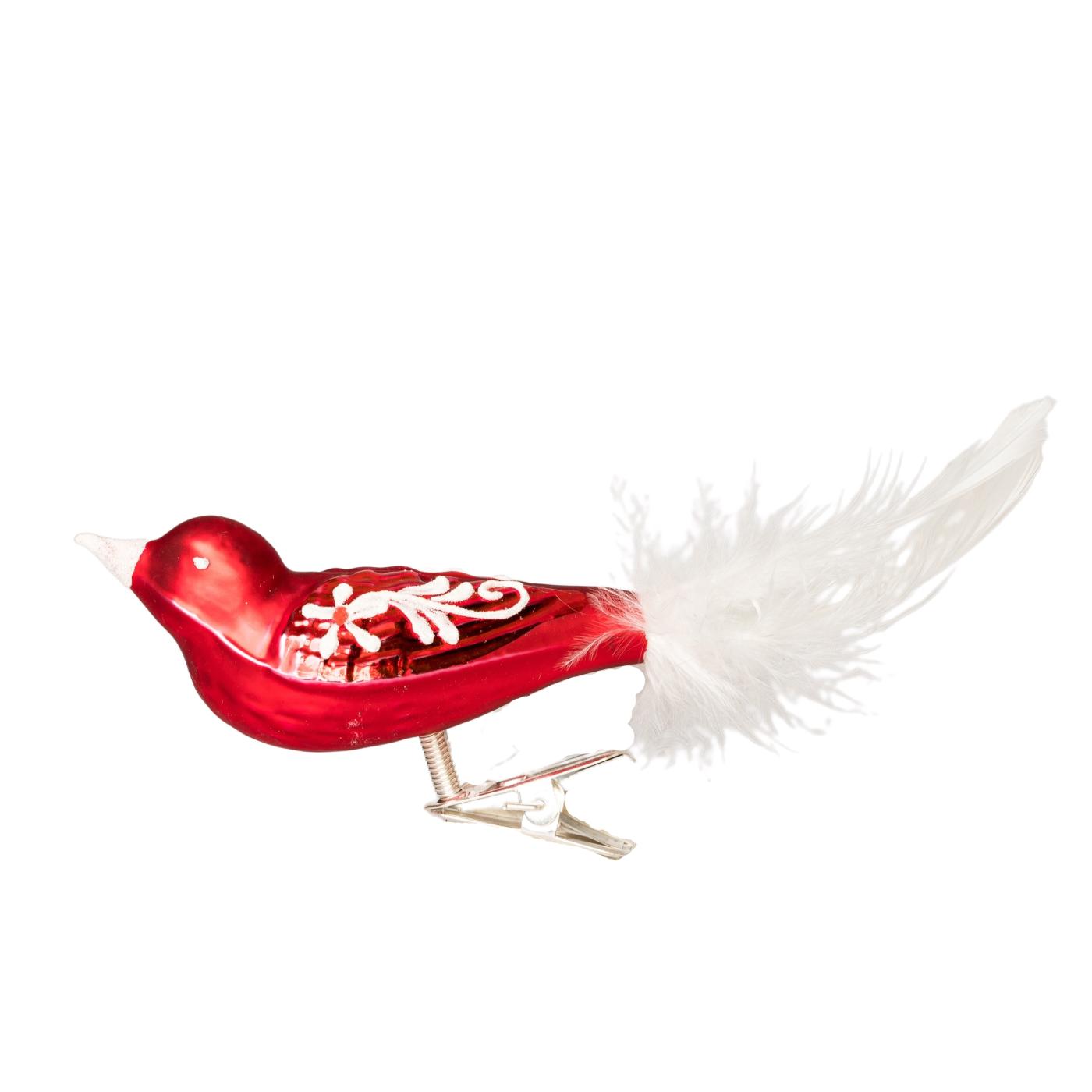 Skleněná ozdoba Ptáček velikonoční kytička červený