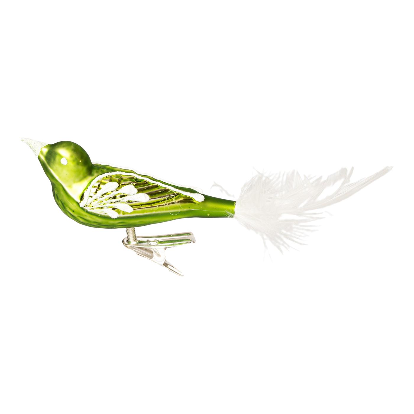Skleněná ozdoba Ptáček velikonoční větvička světle zelený - popis:
