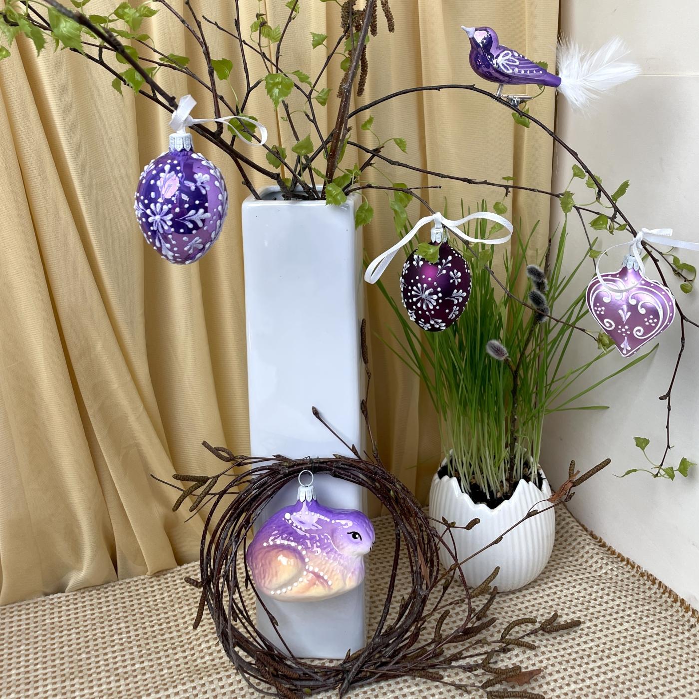 Vyslyšeli jsme přání našich zákazníků, abychom připravili také velikonoční motivy. Naše skleněné kraslice mají velikost jako vajíčka od slepičky. Přichází až ve 12 barevných veselých tónech zdobené 9 různými motivy. Chceme potěšit všechny, kteří vítají svátky jara, aby přinesly barvu a svěžest do interiéru nebo na rozkvétající zahrádku. Doporučujeme výběr jedné ucelené barevné řady nebo opakování vybraných dekorů ve více barevných kombinacích.
