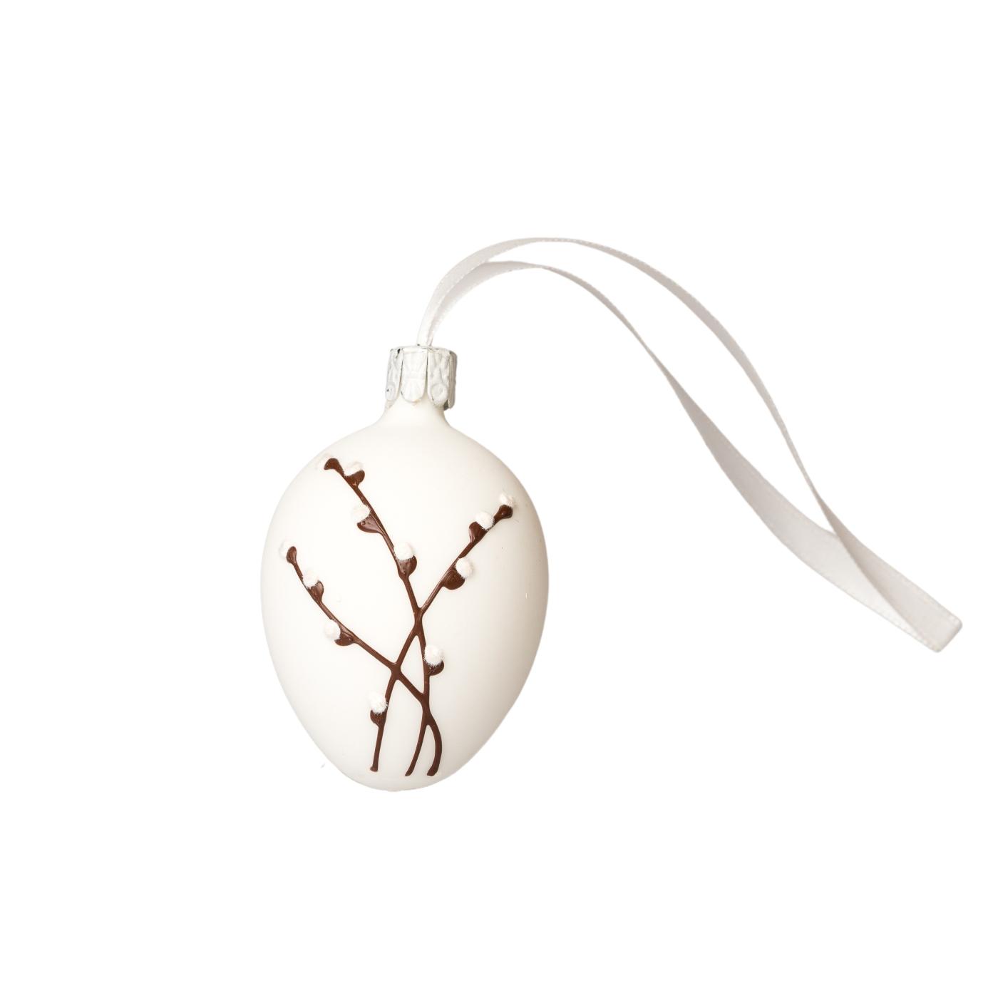 Skleněná ozdoba Velikonoční vajíčka kočičky bílá, 1 ks - popis:
