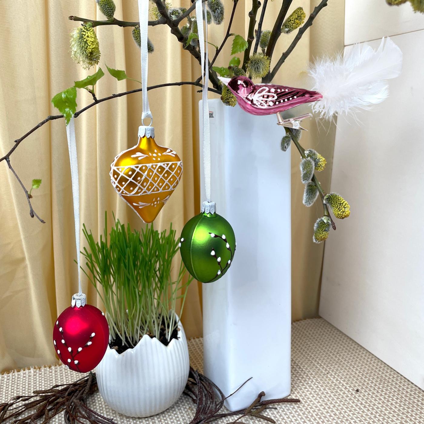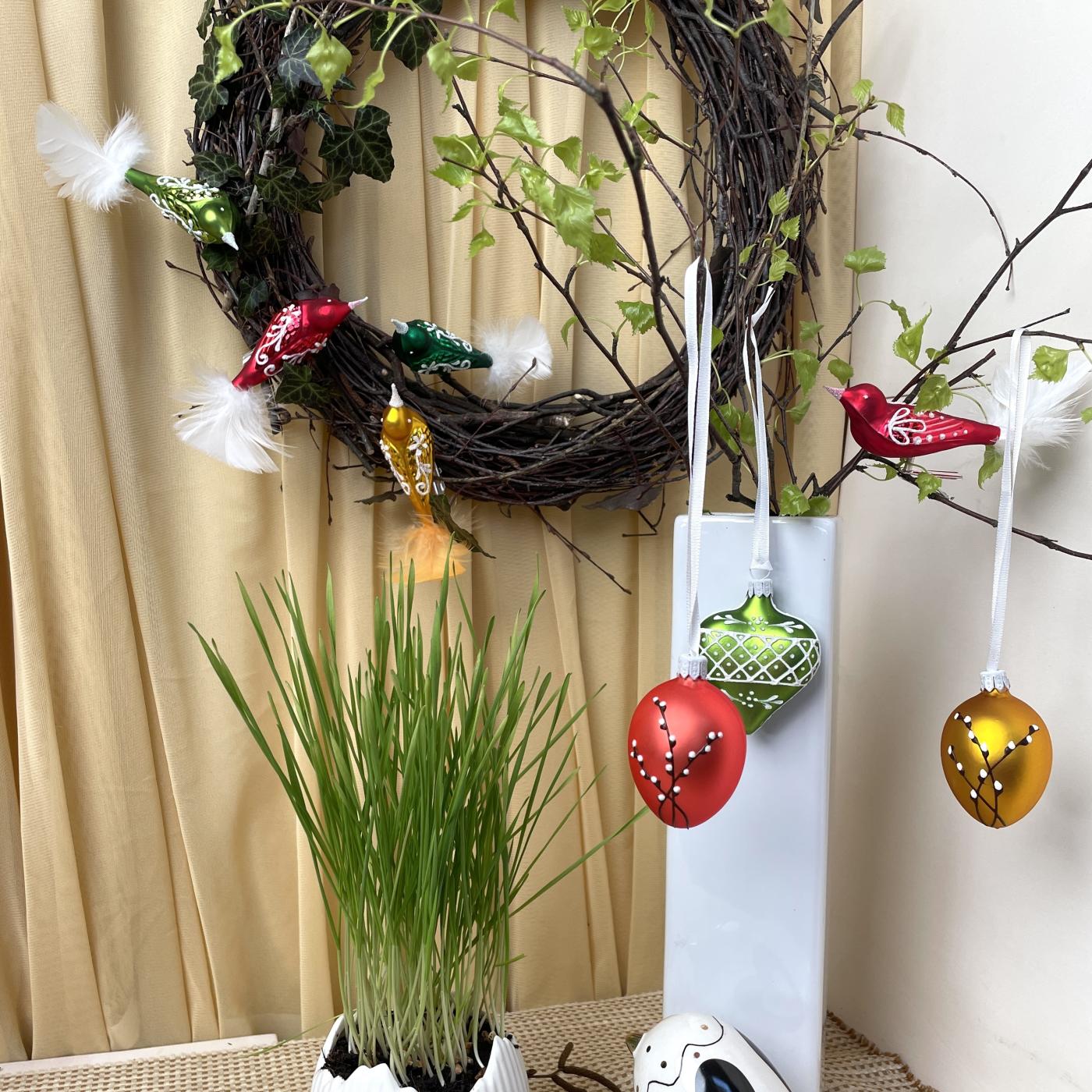 Vyslyšeli jsme přání našich zákazníků, abychom připravili také velikonoční motivy. Naše skleněné kraslice mají velikost jako vajíčka od slepičky. Přichází až ve 12 barevných veselých tónech zdobené 9 různými motivy. Chceme potěšit všechny, kteří vítají svátky jara, aby přinesly barvu a svěžest do interiéru nebo na rozkvétající zahrádku. Doporučujeme výběr jedné ucelené barevné řady nebo opakování vybraných dekorů ve více barevných kombinacích.