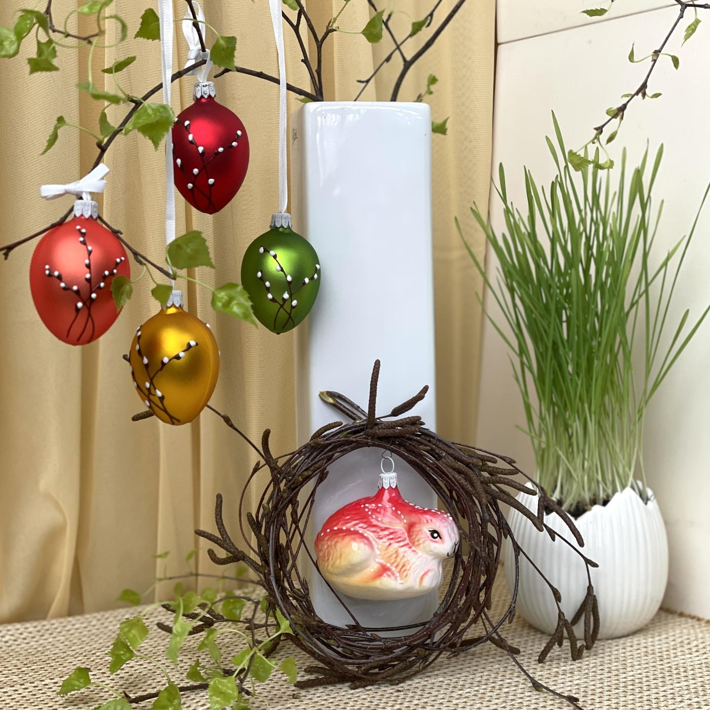 Vyslyšeli jsme přání našich zákazníků, abychom připravili také velikonoční motivy. Naše skleněné kraslice mají velikost jako vajíčka od slepičky. Přichází až ve 12 barevných veselých tónech zdobené 9 různými motivy. Chceme potěšit všechny, kteří vítají svátky jara, aby přinesly barvu a svěžest do interiéru nebo na rozkvétající zahrádku. Doporučujeme výběr jedné ucelené barevné řady nebo opakování vybraných dekorů ve více barevných kombinacích.