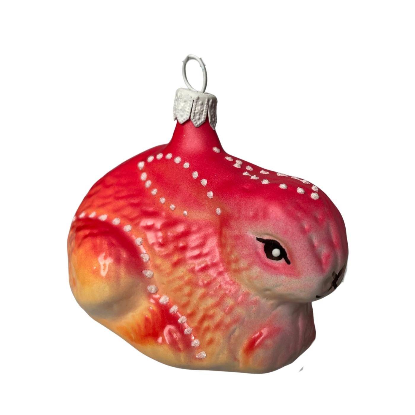 Skleněná ozdoba zajíček červenožlutý, 1 ks