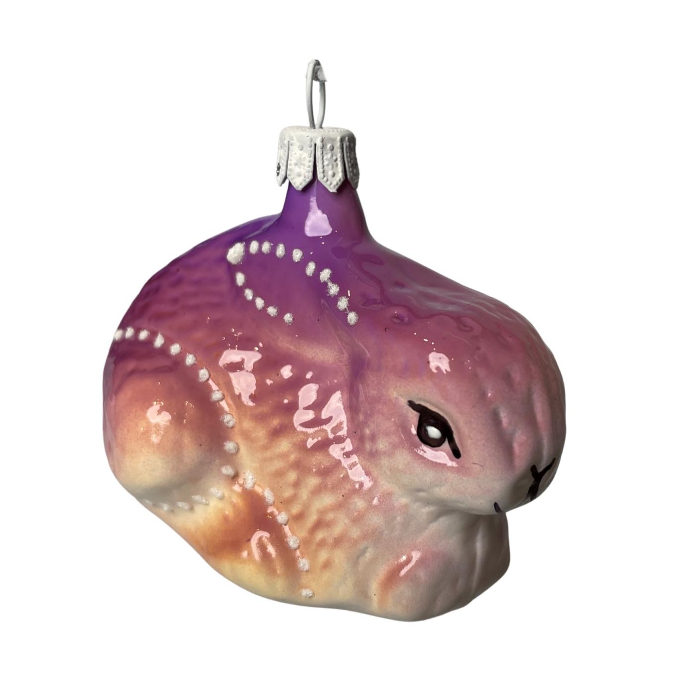 Skleněná ozdoba zajíček fialovobéžový, 1 ks