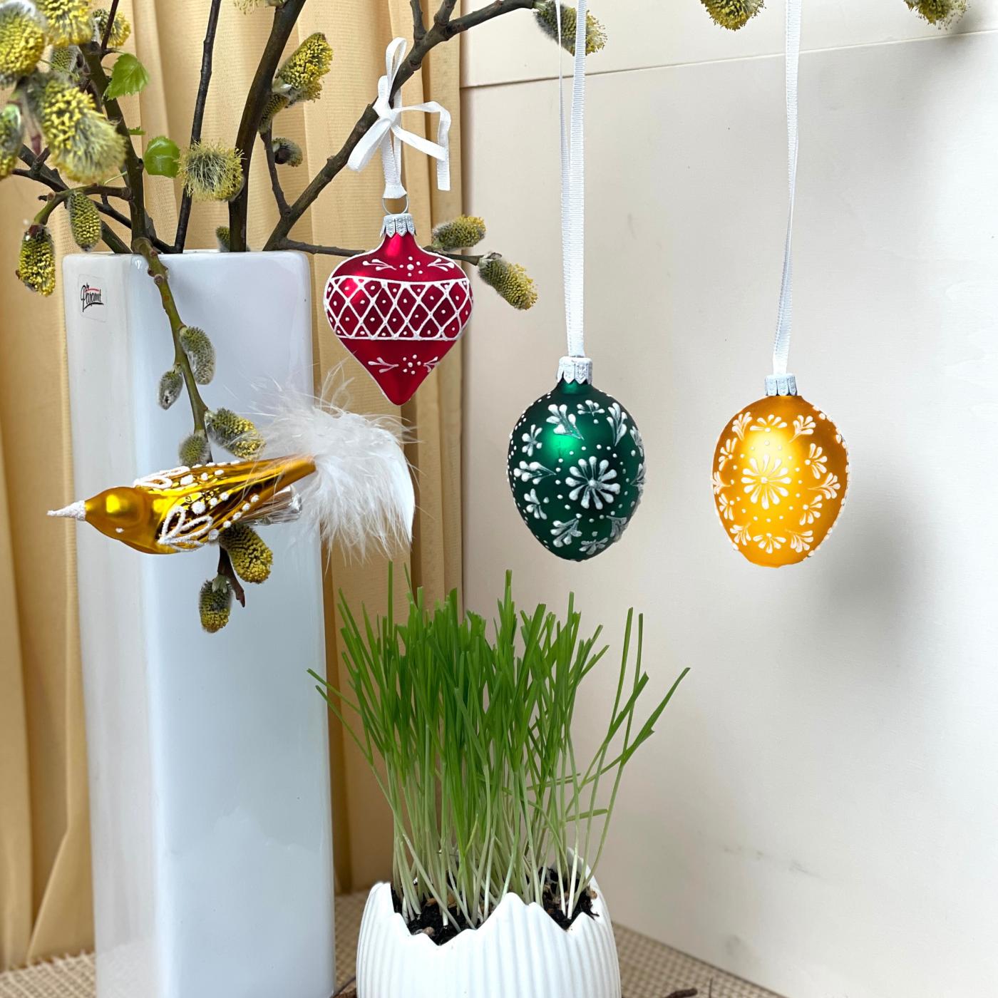 Jarní sada 4 ks skleněných ozdob.