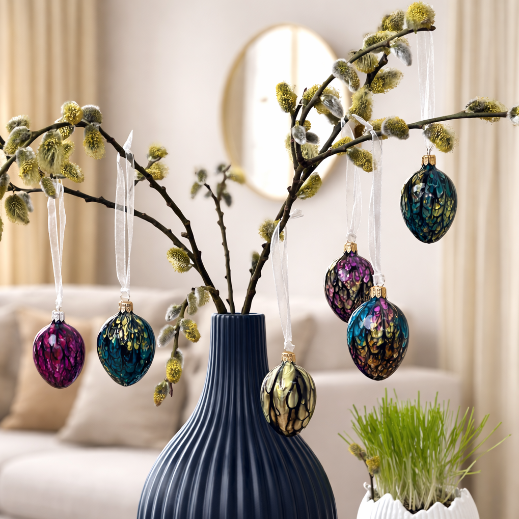 Jarní sada 6 ks skleněných ozdob.