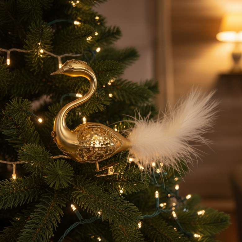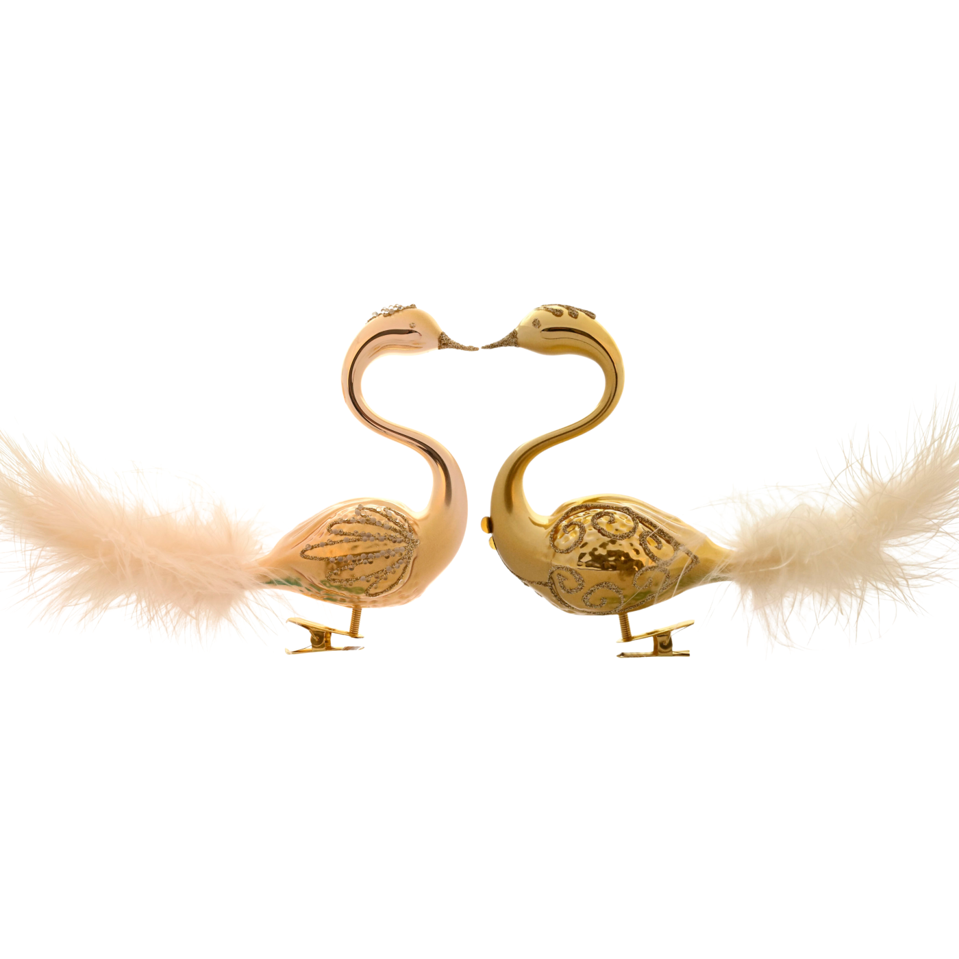 Skleněné vánoční ozdoby bílozlatá sada - Labutí pár zlatý s ozdobou na hlavě, 2 ks