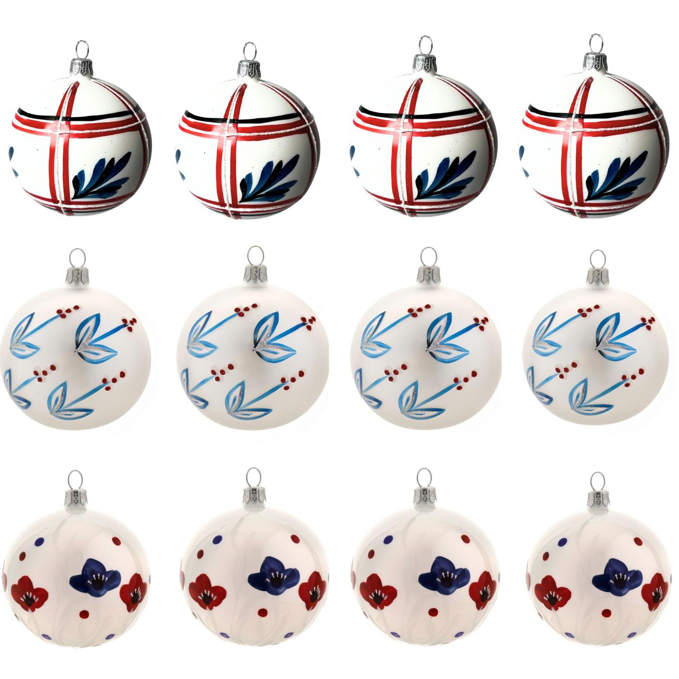 Skleněné vánoční ozdoby Domovina - Lipnice a máky, 12 ks - popis: