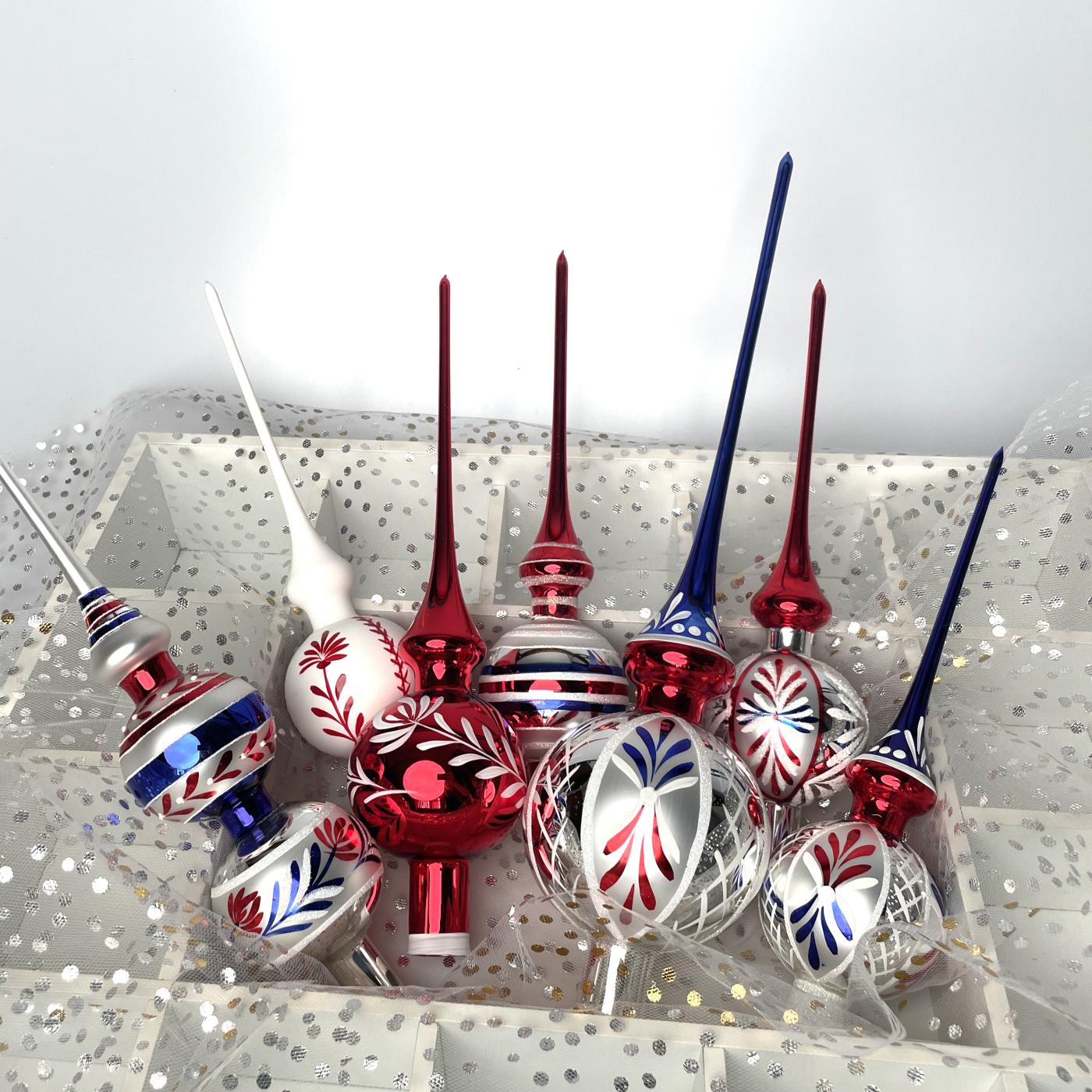 Kolekce Domovina vznikla z touhy uchovat historické motivy a barevnost, jaké nesly první skleněné ozdoby v Čechách. Vyznačuje se sytými barvami na bílém základu, folklorními motivy, kvítky a dekory inspirovanými českými kroji i přírodou – jako by každá ozdoba šeptala příběh domova. Je určená pro ty, kdo hledají tradici, teplo domova a poctivou ruční práci s odkazem na naše kořeny. Doporučujeme ji kombinovat s přírodními materiály, dřevěnými nebo slámovými ozdobami a klasickými tvary s jednoduchým dekorováním.