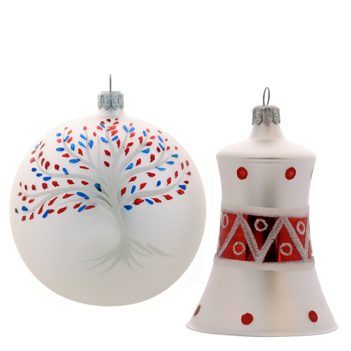 Skleněné vánoční ozdoby Domovina - Zvonek a strom života, 2 ks - popis:
