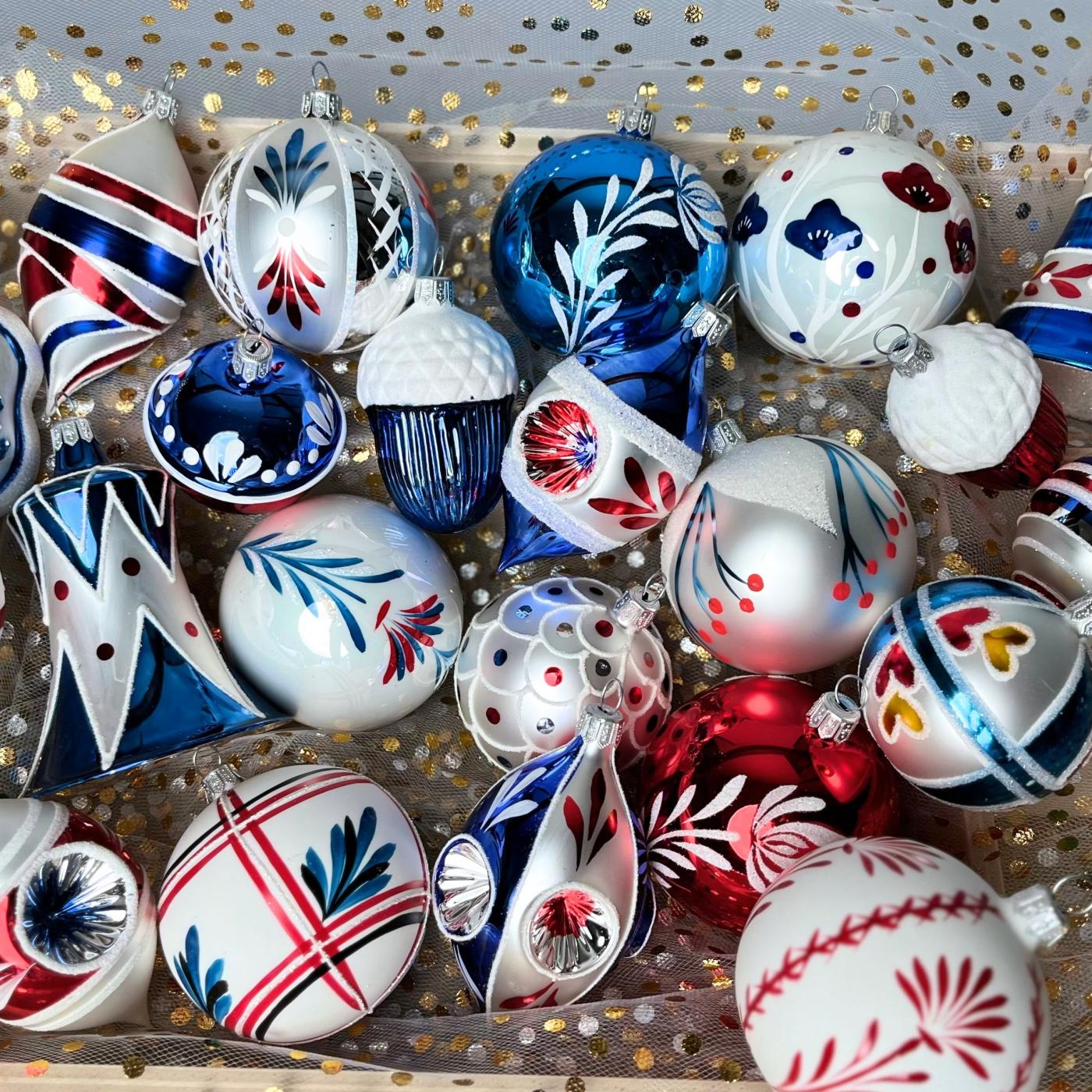 Kolekce Domovina vznikla z touhy uchovat historické motivy a barevnost, jaké nesly první skleněné ozdoby v Čechách. Vyznačuje se sytými barvami na bílém základu, folklorními motivy, kvítky a dekory inspirovanými českými kroji i přírodou – jako by každá ozdoba šeptala příběh domova. Je určená pro ty, kdo hledají tradici, teplo domova a poctivou ruční práci s odkazem na naše kořeny. Doporučujeme ji kombinovat s přírodními materiály, dřevěnými nebo slámovými ozdobami a klasickými tvary s jednoduchým dekorováním.