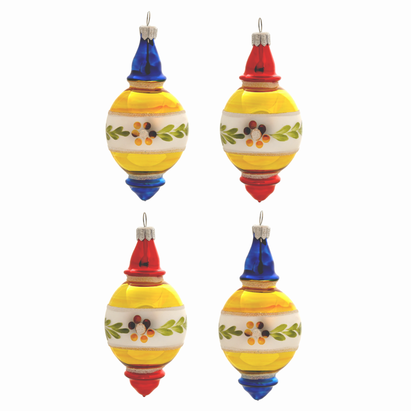 Skleněné vánoční ozdoby Retro - Kapky s lupínkem, 4 ks