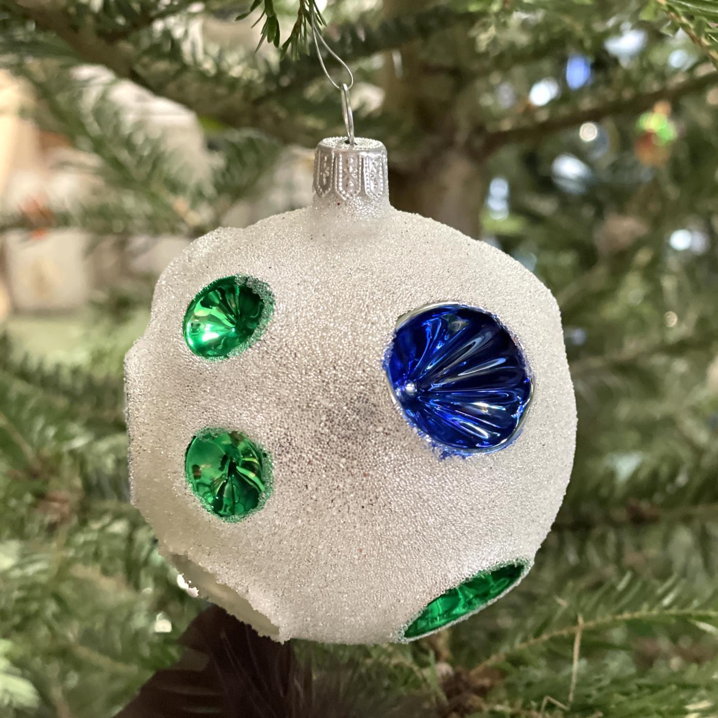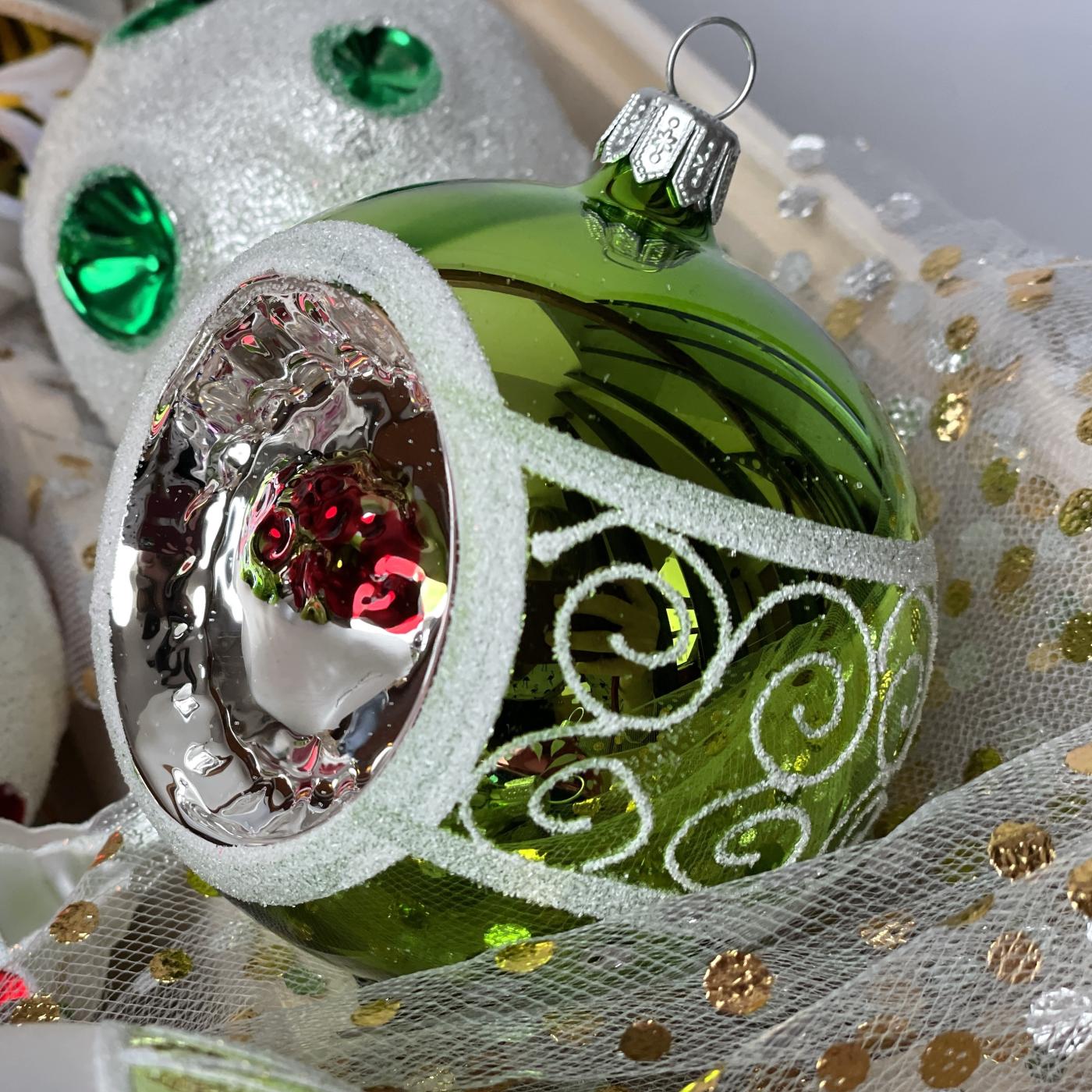 Skleněné vánoční ozdoby Retro - Koule píchané a košíčkem, 6 ks