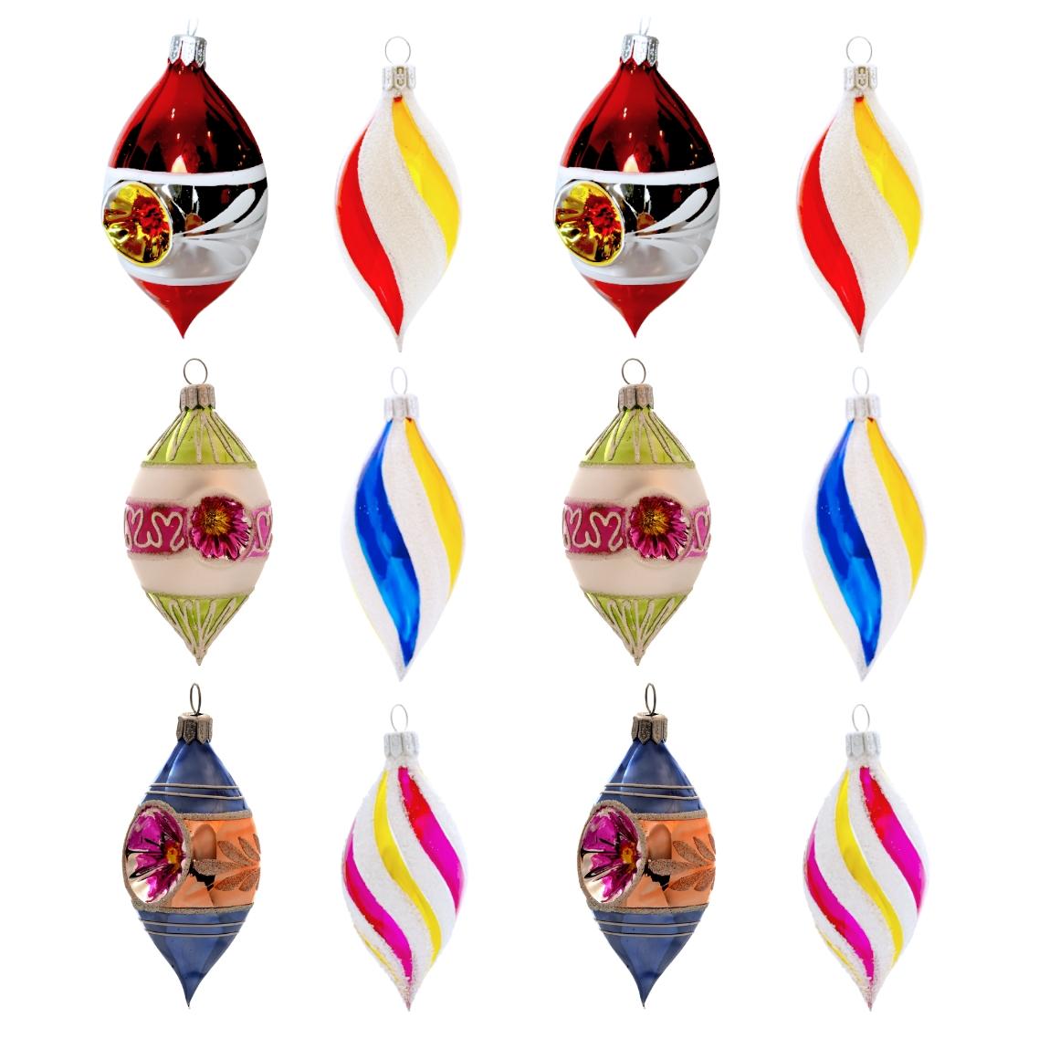 Kolekce Retro vznikla podle stejných archivních podkladů jako Domovina, ale nabízí pestřejší a hravější podobu prvních českých skleněných ozdob. Na tradičním bílém základu vynikají sytější barvy – růžová, zelená, žlutá i tóny modré a červené. Retro kolekce potěší všechny, kdo milují hravost a nostalgii, a zároveň se skvěle kombinuje s jednobarevnými ozdobami z kolekce Basic.