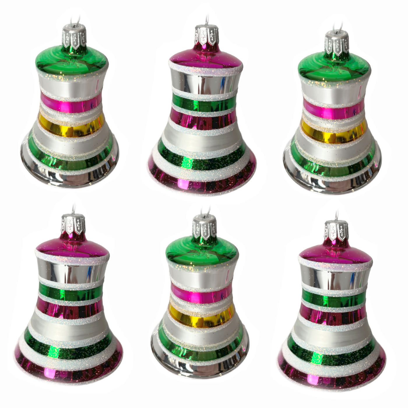Skleněné vánoční ozdoby Retro - Retro zvonky, 6 ks