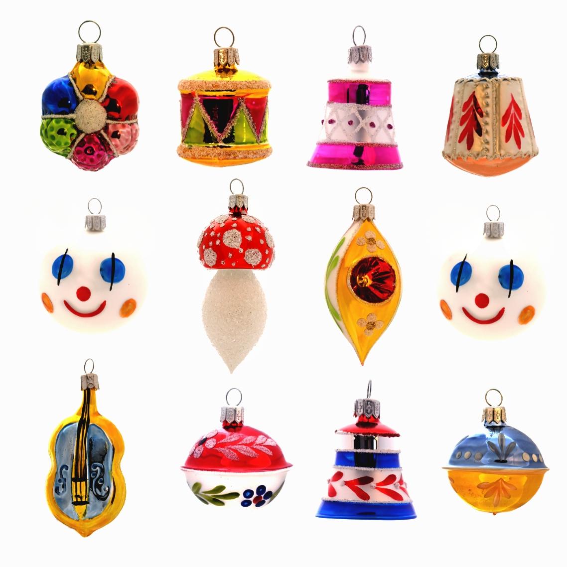 Skleněné vánoční ozdoby Retro - Velká Retro sada, 12 ks