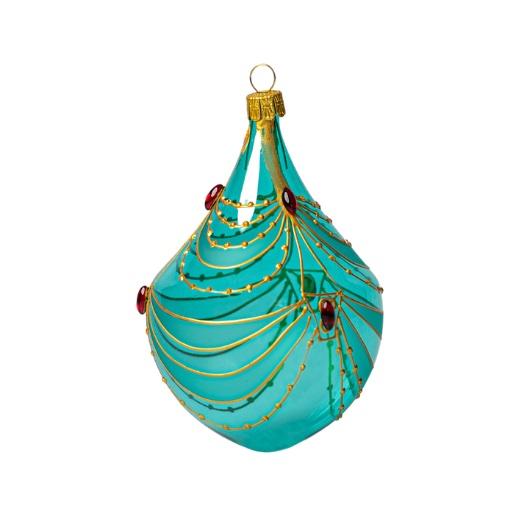 Vánoční ozdoba Secese -flakon zlatě zdobený s kameny modrý, 1 ks - popis: